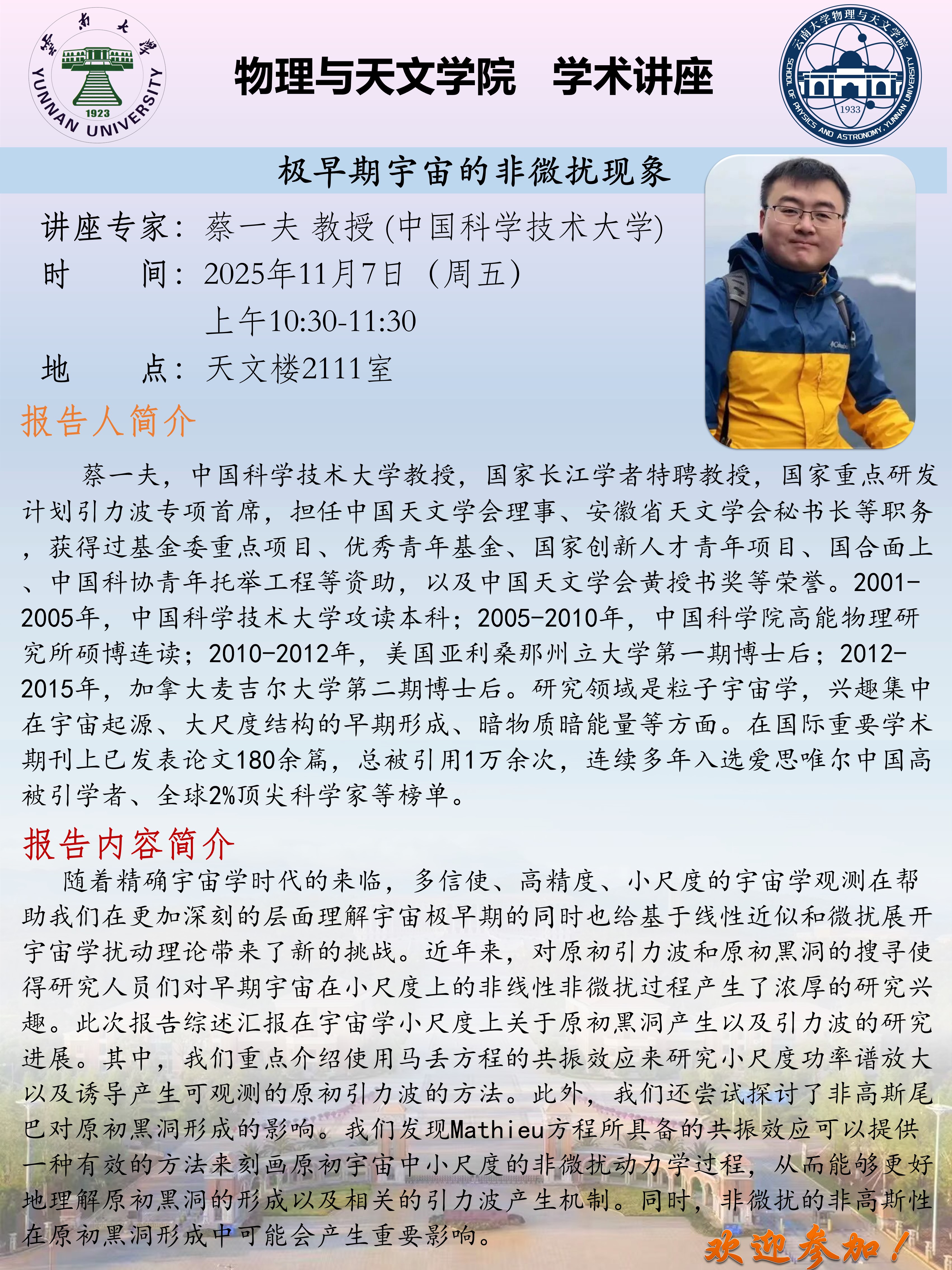 云南大学物理与天文学院(含中国西南天文研究所)2026年接收优秀应届本科毕业生免试攻读研究生(含直博生)实施细则