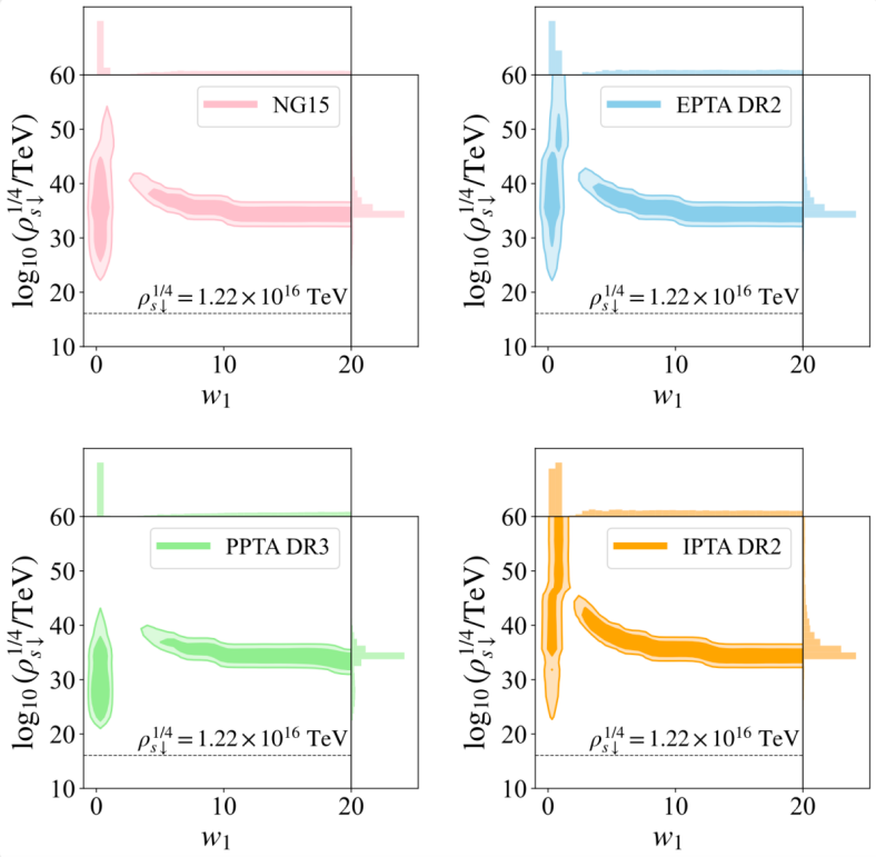 图1:国际脉冲星计时阵列合作组(4组)最新数据对无奇点宇宙反弹能标的限制。